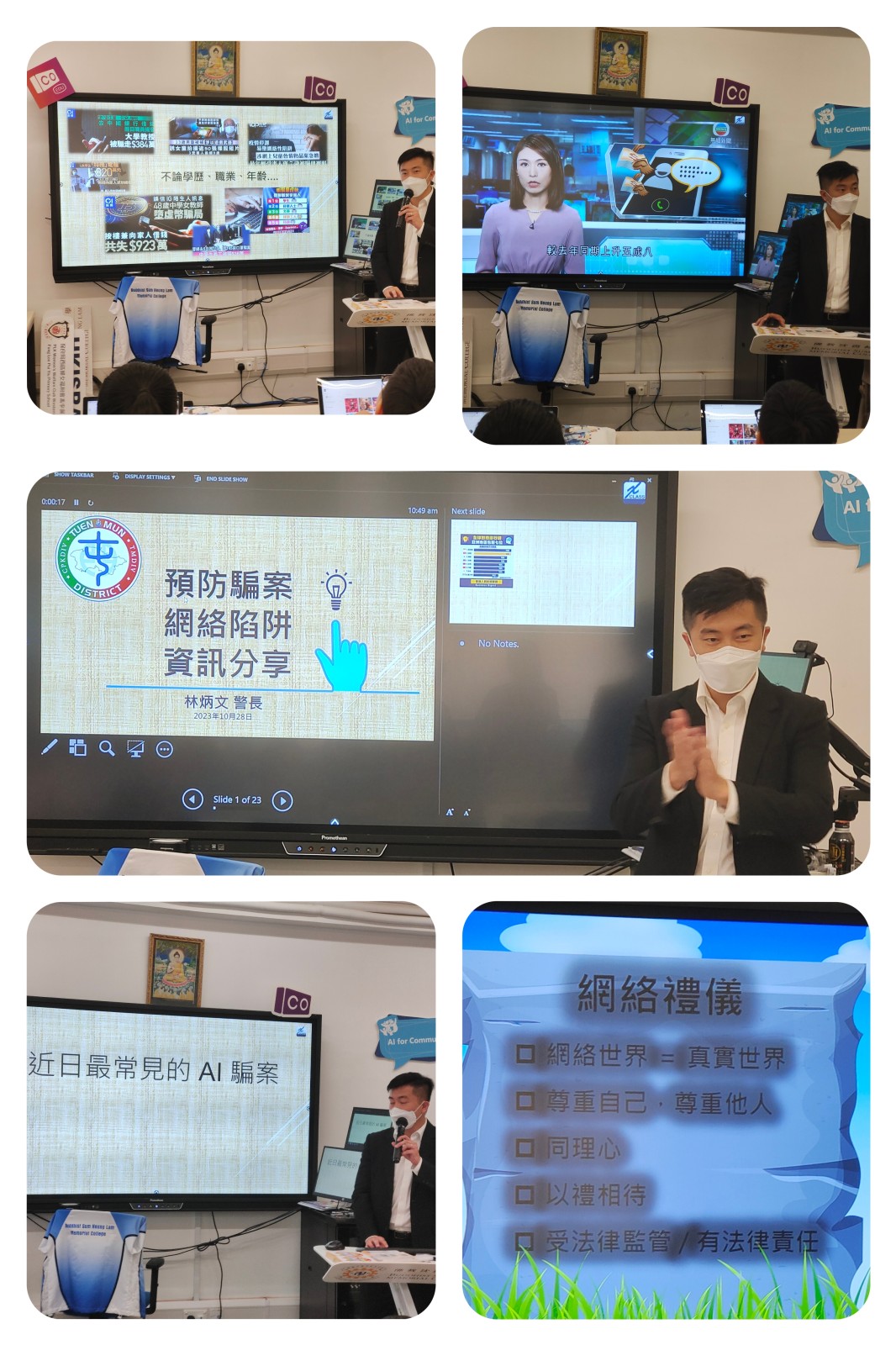 最後,屯門警區林炳文警長在課堂中亦教授最新的AI騙案防騙知識,提升了參與同學的資訊素養。