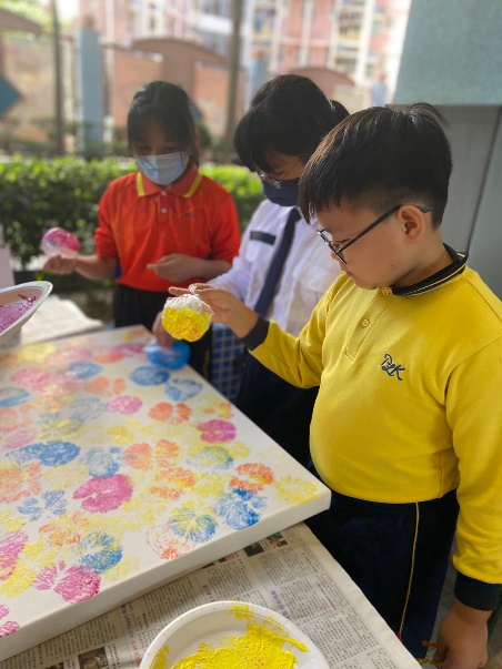 左印右印,五顏六色的花朵就輕鬆完成了!
