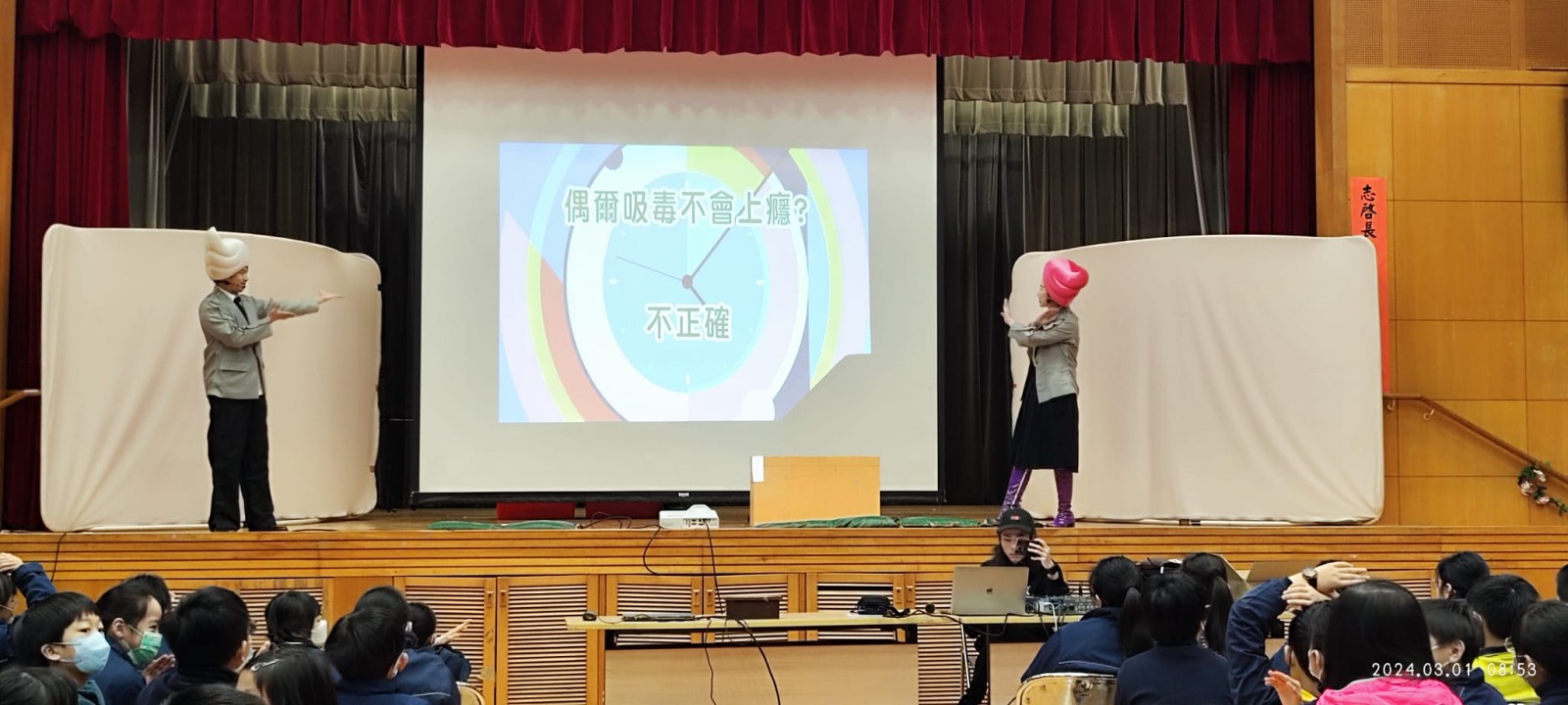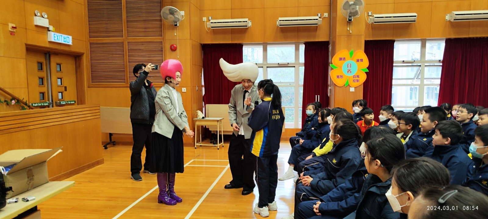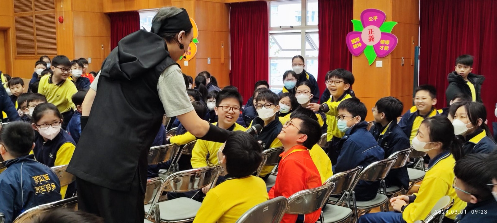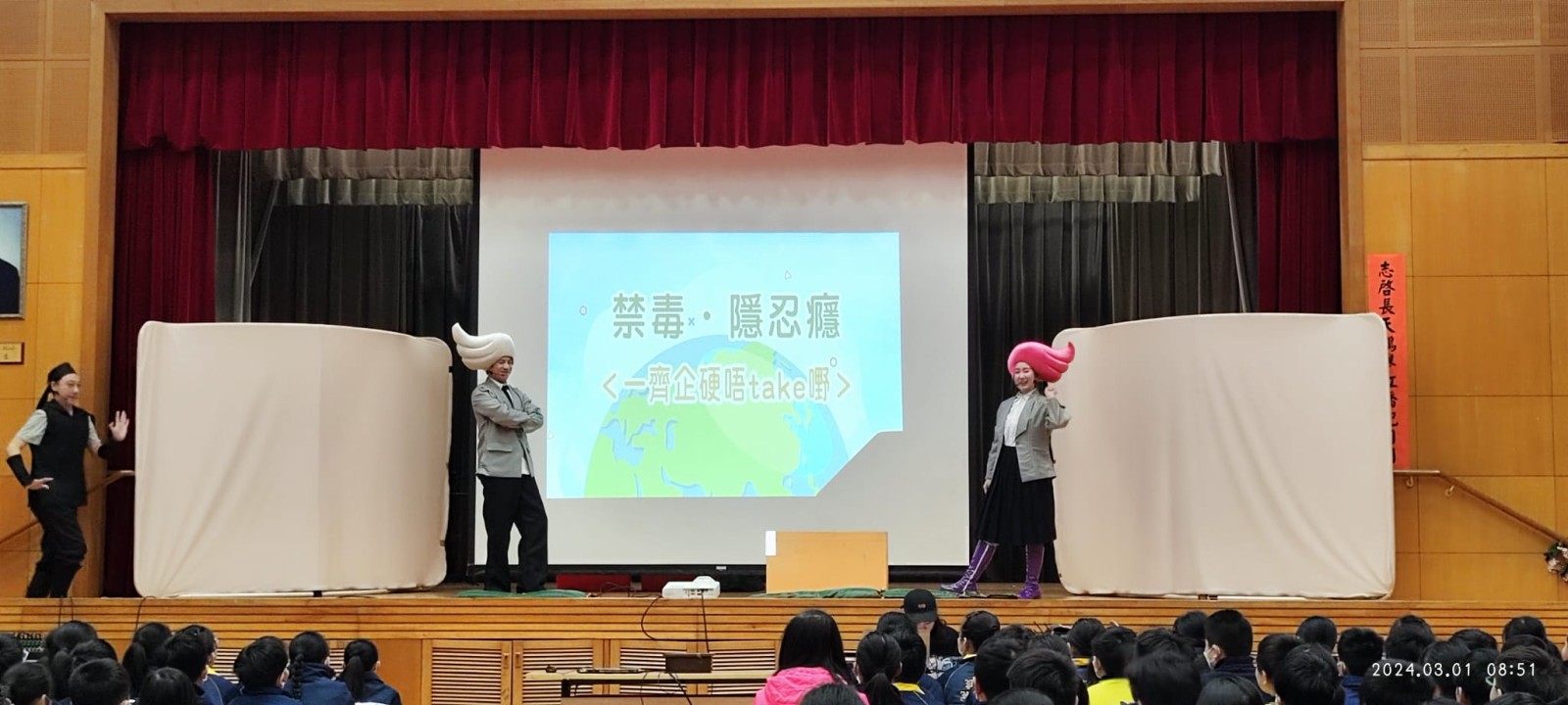 為保護下一代免受毒害,禁毒教育必須從小開始。有見及此,學校邀請了由保安局禁毒處舉辦的《禁毒•隱忍癮》舞台劇(春天實驗劇團負責演出),劇場演出十分成功,學生通過多個生動的互動環節,刺激思考,加深對抗毒知識的印象,並逐一破解毒品迷思,有助他們日後於不同情境作出正確抉擇。