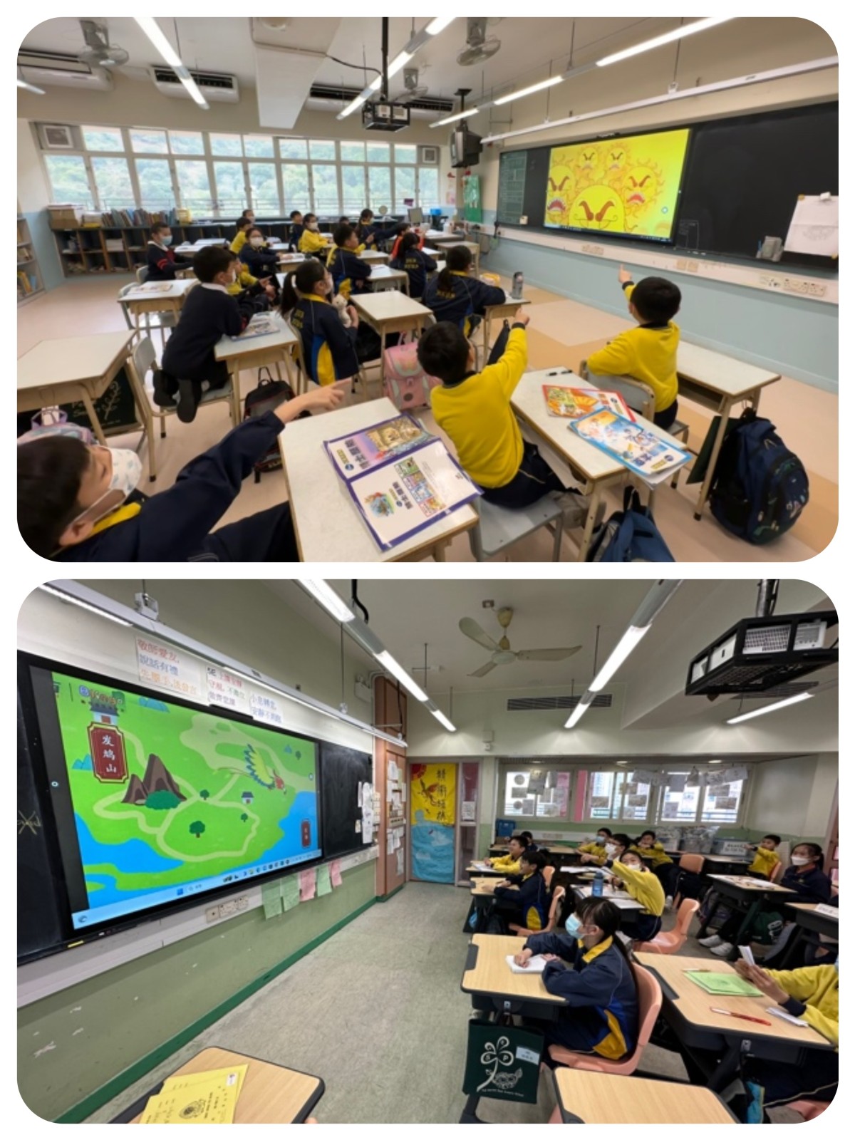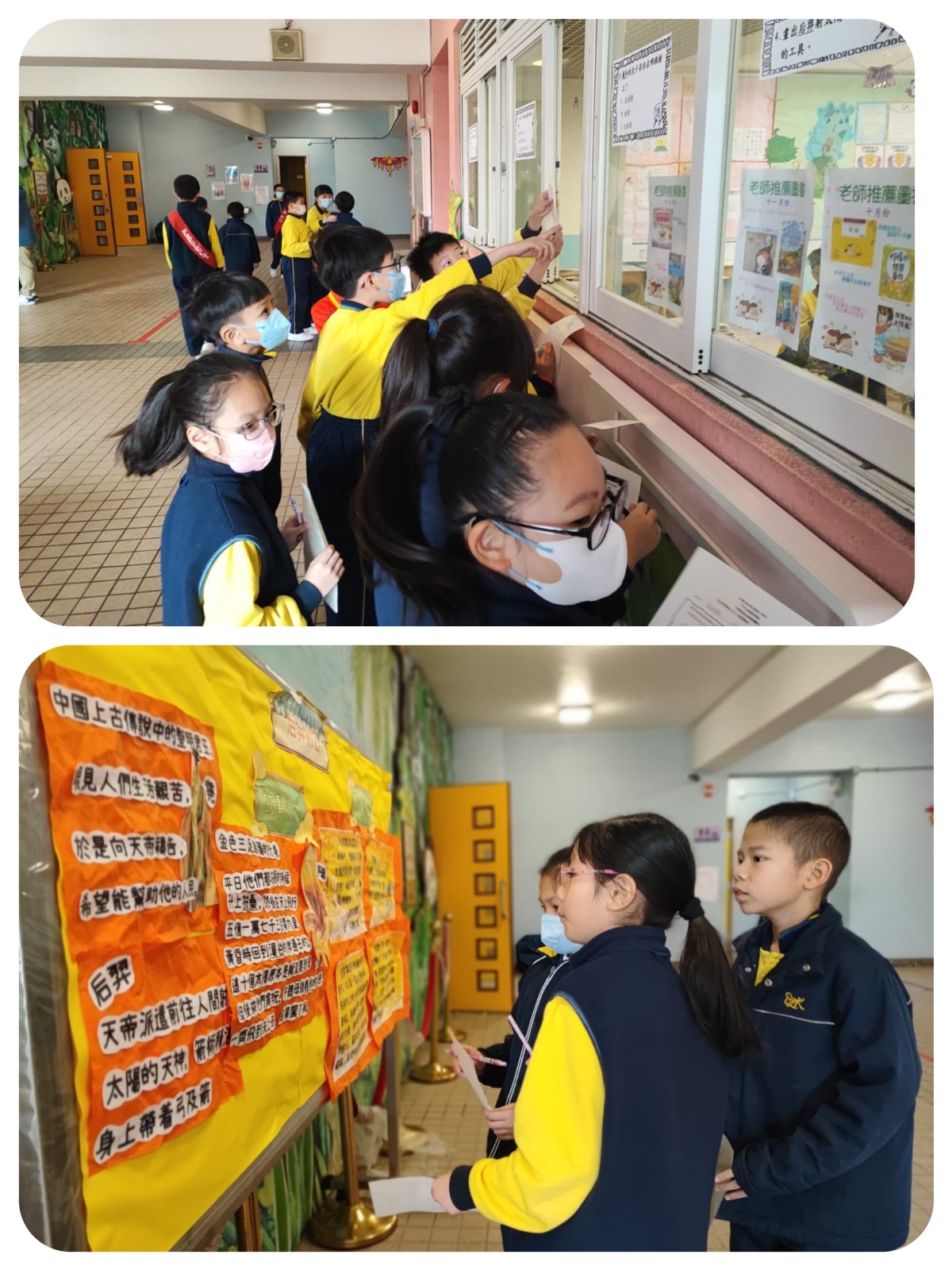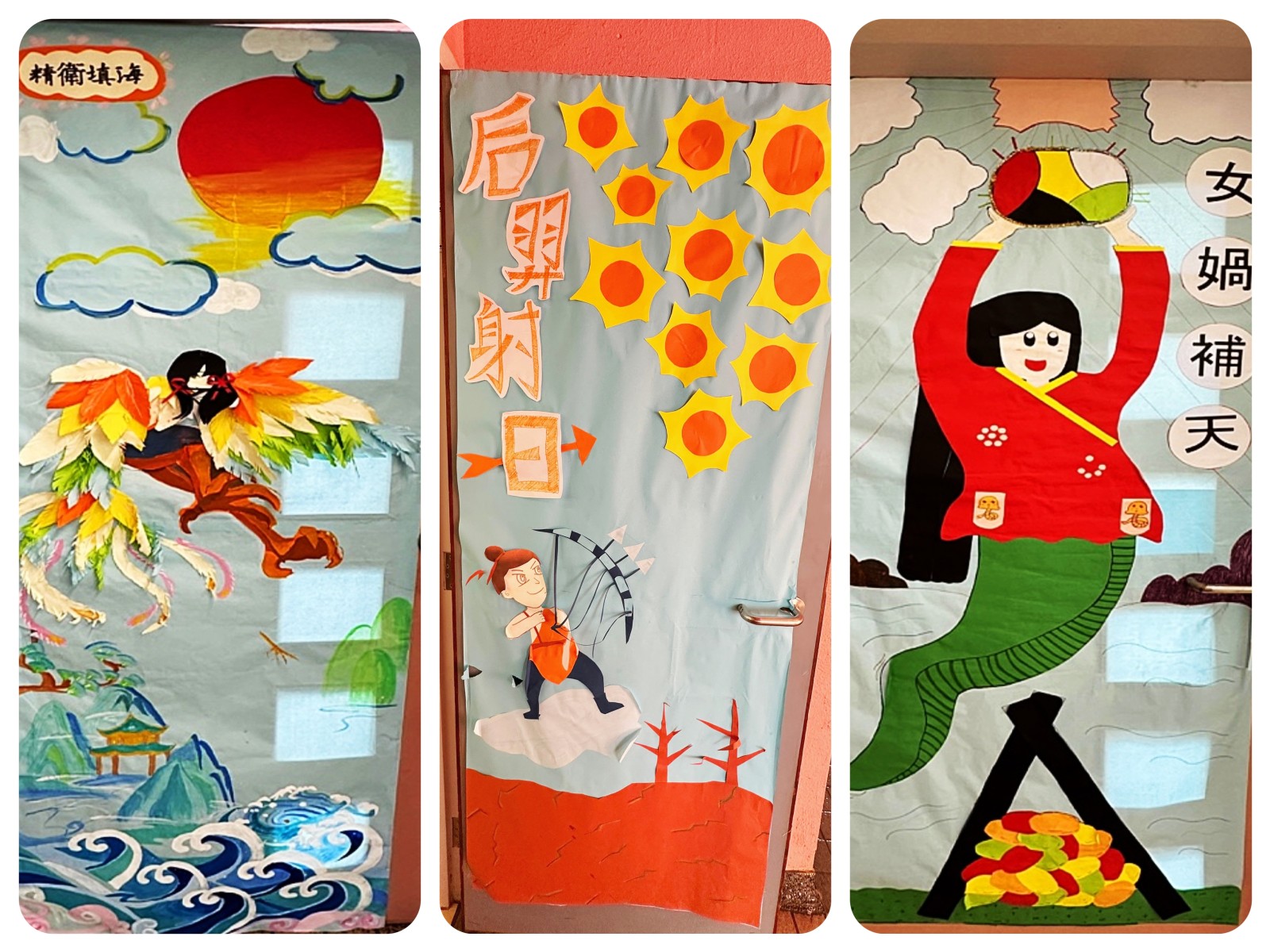 「飛越神話世界」宣傳海報比賽,活動邀請了家長義工製作出大型宣傳海報,海報張貼在各年級的課室供同學欣賞。透過在課室佈置一系列與中國神話故事相關的展示,營造出充滿中國神話特色的氣氛,學生透過宣傳海報加深了對神話的認識。