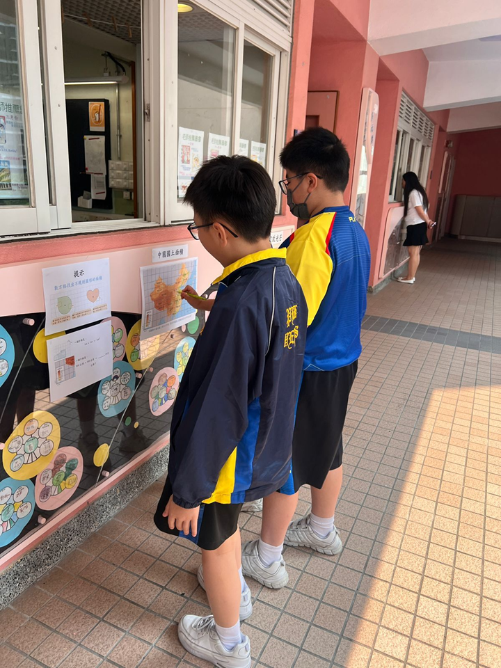 數學遊蹤與攤位活動方面,今年度以中國文化作主題。學生可以到操場參與以大寫中國數字作主題的攤位遊戲;一至三年級及四至六年級亦可分別在樓層玩以花碼及中國國土面積作主題的遊蹤活動。學生透過活動了解與數學有關的中國文化,培養國民身份認同。