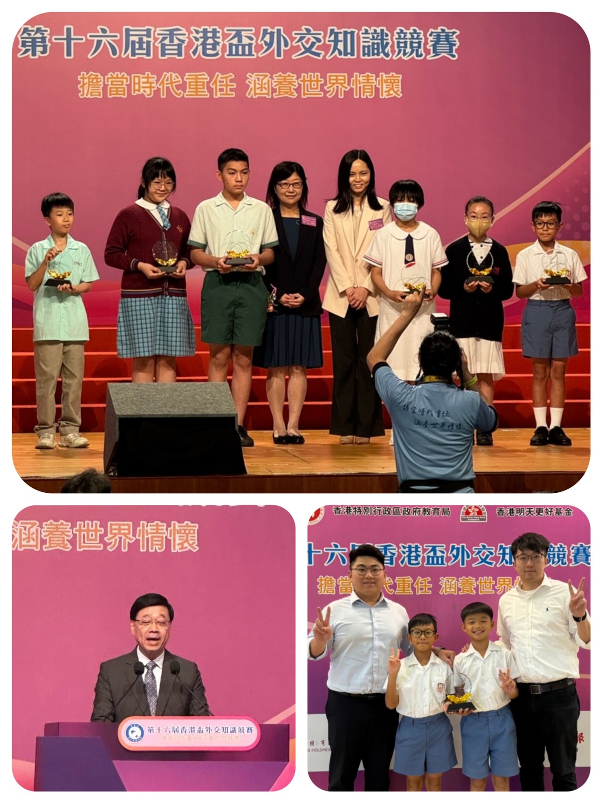 校早前參加了由外交部駐香港特別行政區特派員公署、教育局與香港明天更好基金聯合主辦「第十六屆香港盃外交知識競賽」,目的是提升學生對國家外交知識的興趣和認知,藉此放眼世界,了解外交對全球化發展的重要性。第十六屆「第十六屆香港盃外交知識競賽」外交知識競賽決賽暨頒獎典禮於五月十八日假拔萃女書院舉辦。今年競賽以「擔當時代重任 涵養世界情懷」為主題,吸引了全港263所中小學,近7萬人報名參賽。本校榮獲小學組優異獎。