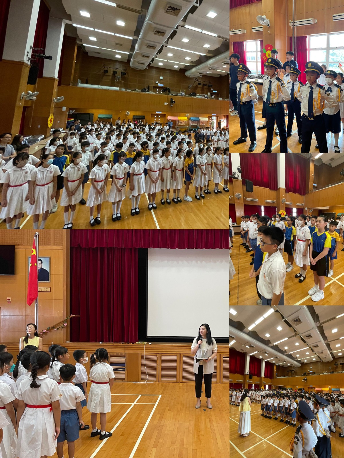 開學了!老師和同門們都精神奕奕地上學,無論是三、六年級的同學參加在禮堂舉行的升旗禮,還是其他在課室觀看升旗禮直播級別的同學,我們全校師生都共同參與這場饒富意義的升旗儀式,讓我們能夠以最響亮的聲音高唱國歌,表達對祖國的熱愛和敬意。