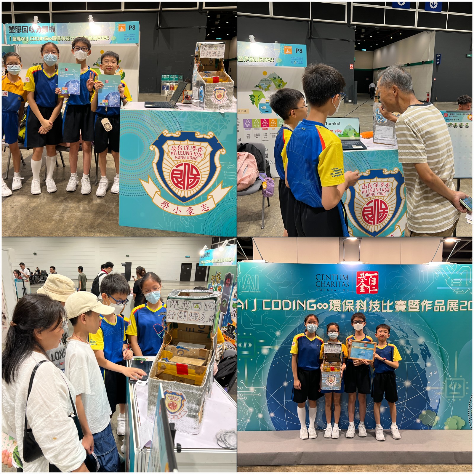 本校學生5A楊洺鍕、5A黃奕皓、5A彭暐晴、5A陳逸怡於「2024童擁AI CODING ∞ 環境科技比賽」小學組獲選入圍。他們馮「人工智能塑膠回收分類機」獲得評審垂青,並於香港會議展覽中心向公眾展出及介紹作品,獲益良多。