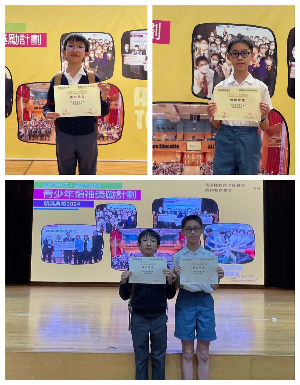 【喜訊】 由萬鈞教育基金及馮漢柱教育信託基金聯合主辦「卓越今天,成就將來」青少年領袖獎勵 計劃,目的為支持本地資優及優秀學童的學習及發展,鼓勵同學追求卓越,不斷求進。計劃主要就學生於「領導才、創新思維、才藝、社會承擔」四個範疇的發展作評核,本校6A班學生楊洺鍕及黃奕皓榮獲「傑出學生」獎,各人可獲得獎學金$5000及獎狀,實在可喜可賀!