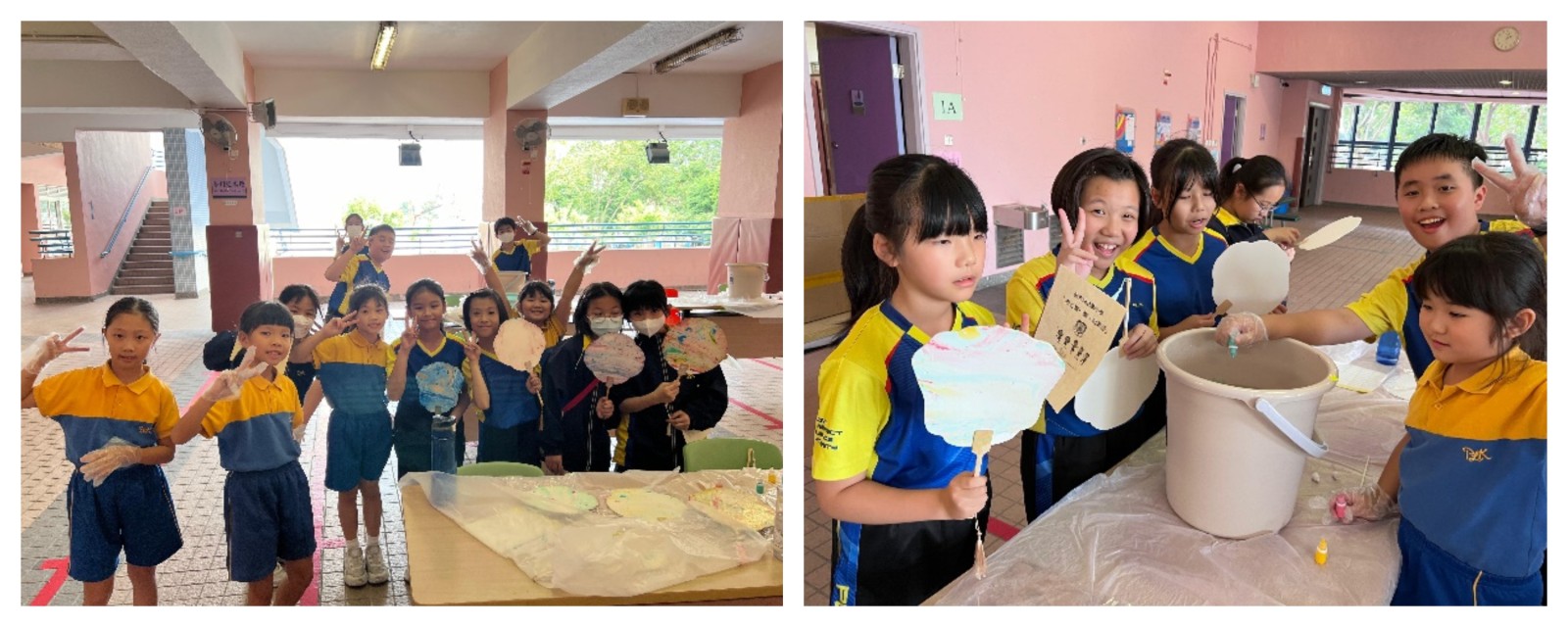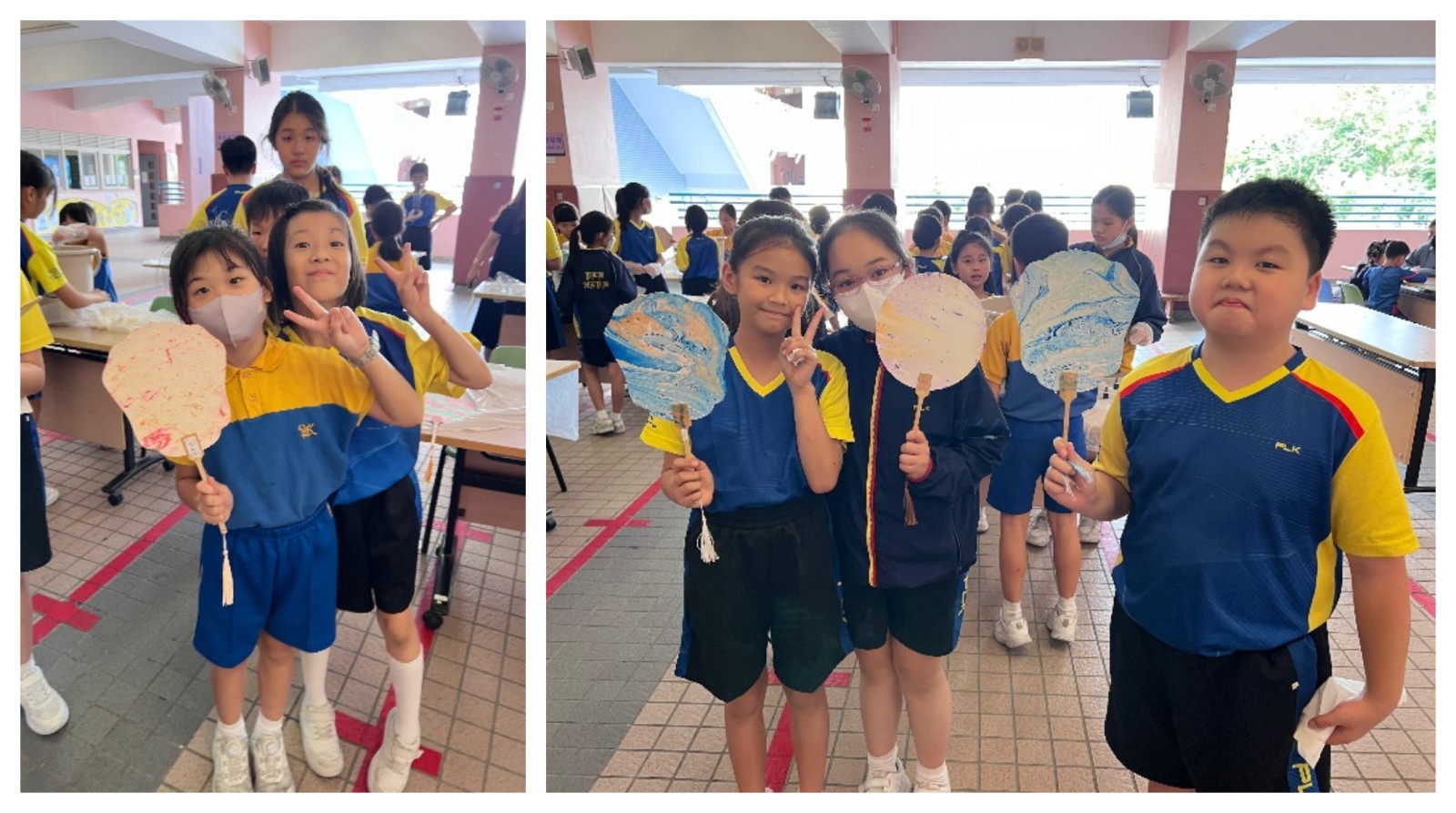 五年級同學一同製作漆扇後愉快的模樣。