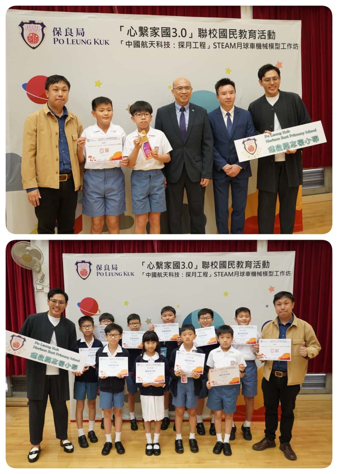 為讓學生加深認識我國科技發展,培養學生民族自豪感以及對科學與科技的興趣,本校安排10位五、六年級學生參加心繫家國活動:「中國航天科技:探月工程」STEAM月球車機械模型工作坊及挑戰。學生在活動中自行製作模擬登月車,控制模型車進行摸擬收集樣本比賽,並於比賽中獲得亞軍。