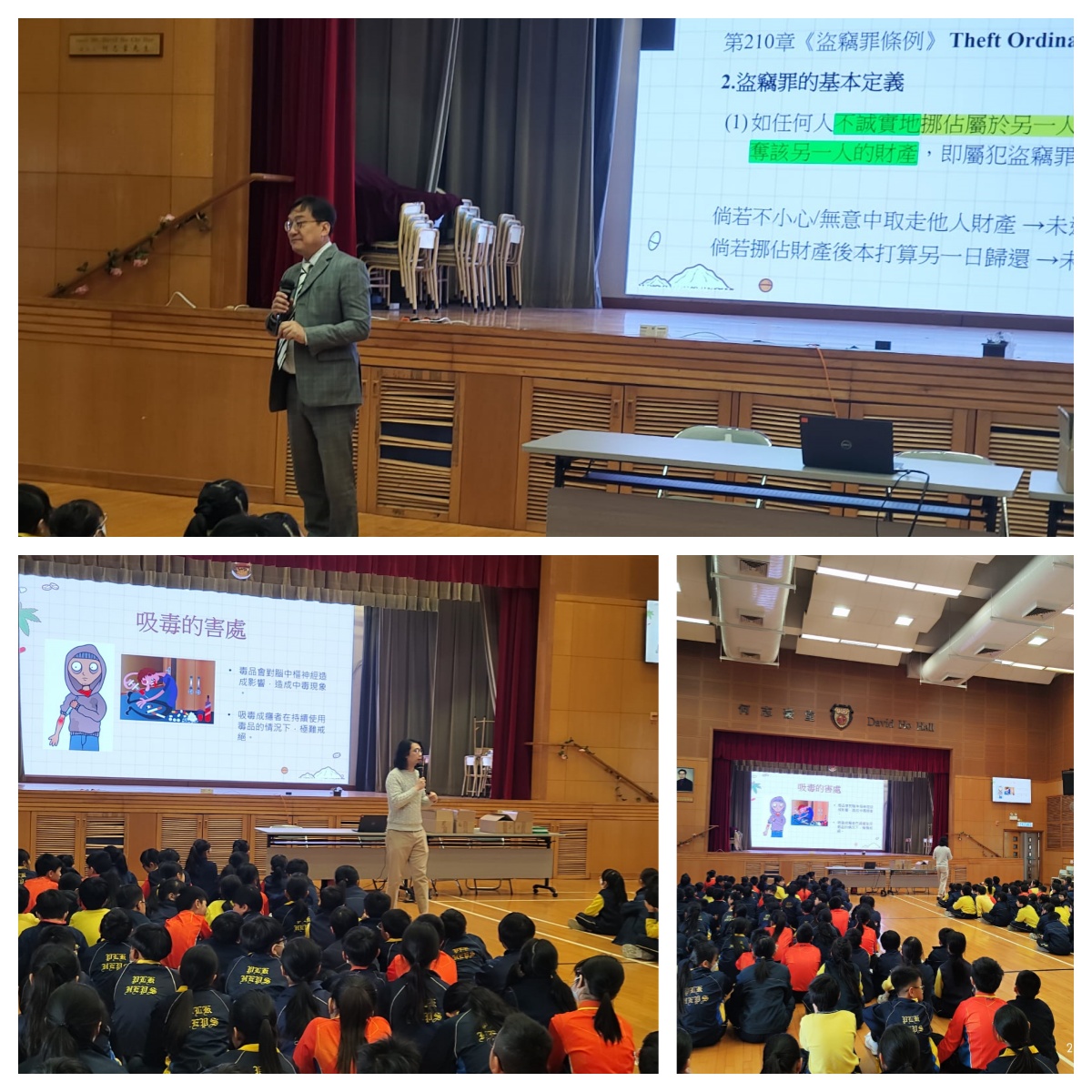 四年級及六年級學生參與了香港政策研究所舉辦的一場有關禁毒講座--「『麻』煩的大麻:拒絕大麻,拒絕麻煩」。这次講座的分享內容旨在增强學生們對大麻及其危害的認識,引導他們建立健康的生活觀念。講師透過多媒體和互動問答,介紹了大麻的危害。同學們還收到了《「麻」煩的大麻》繪本,生動展現了毒品的影響。