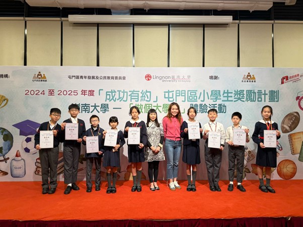 除嘉許狀外,委員會亦邀請獲獎的同學參加嶺南大學──「做個大學生」體驗活動,當天同學們除了有機會參觀嶺南大學的校園外,亦有機會和大學生一起交流,更難得的是有機會和大學生一同上課,課題為「蟲來唔嘥嘢 — 有機廚餘處理大法」及『趣看生物多樣 性 — 「本 地 薑」 睇真 D』,實在是一次難能可貴的學習經驗。