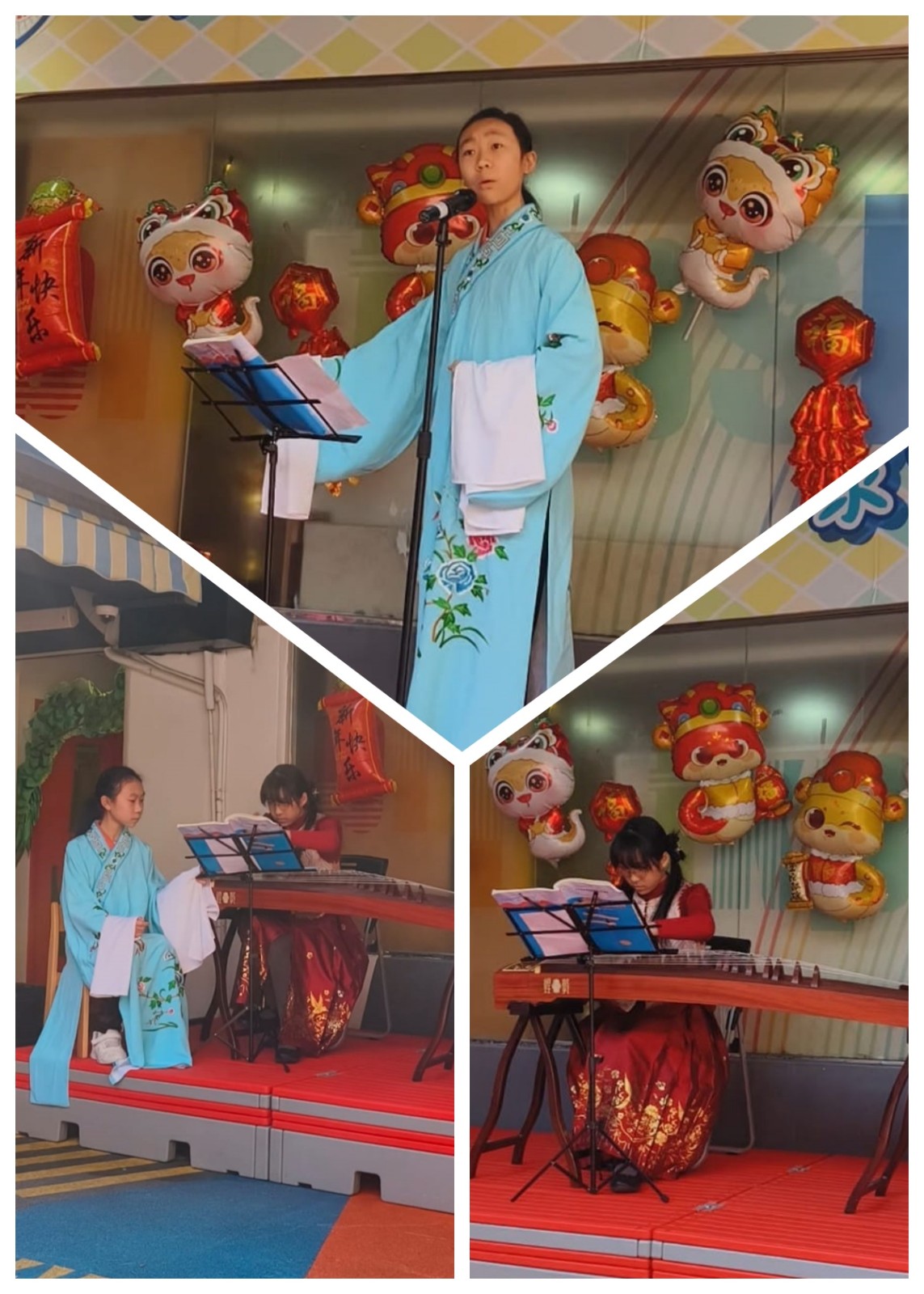 內容:配合保良局田家炳兆康幼稚園華服日主題,本校派出馮芊語同學和陳姿辰同學表演粵劇獻唱及彈奏古箏給幼稚園家長觀賞,增添中國文化氣氛。