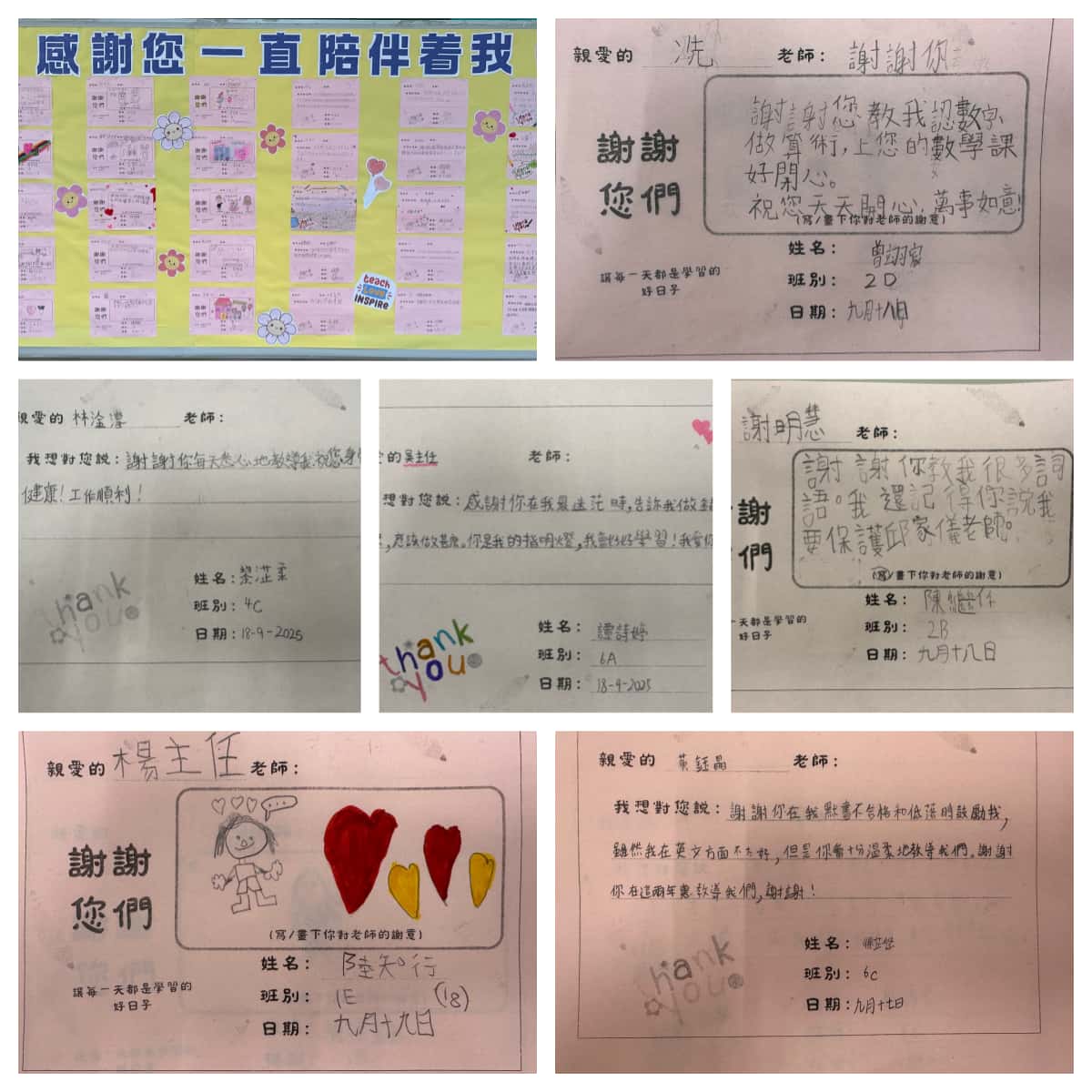 本校於教師節舉行慶祝活動,同學們一同觀賞了感謝老師的短片,透過一幕幕動人的畫面,深切體會到老師們日常的辛勞與付出。隨後,學生們用心設計敬師卡,把對老師的感恩之情化為圖畫與文字,表達對老師的敬意與謝意。整個活動既溫馨又有意義,不但讓同學們學會感恩,也讓老師們感受到來自學生最真摯的祝福與關懷。