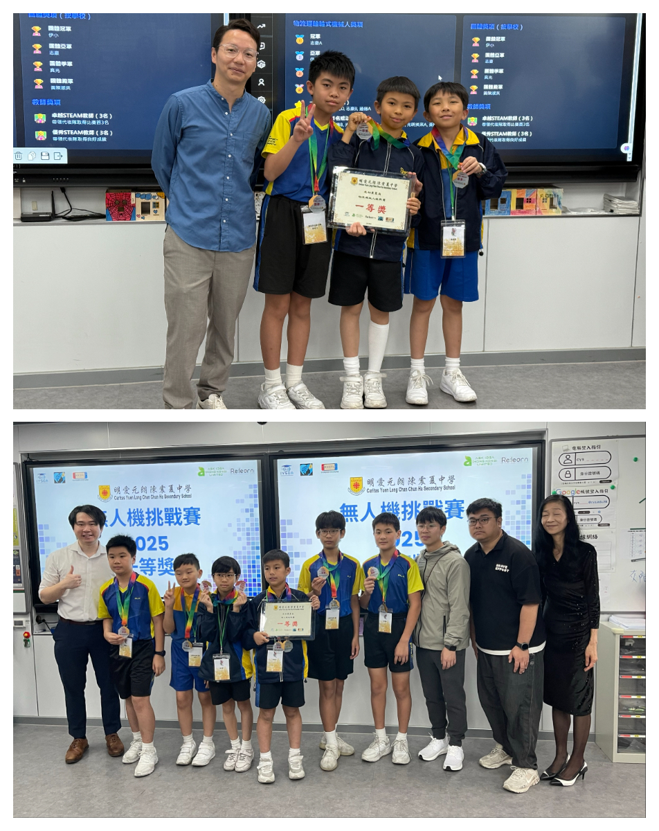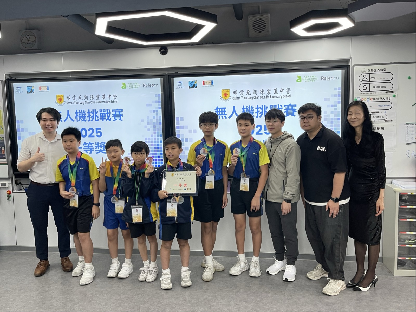 本校積極發展STEAM教育,鼓勵學生挑戰自己,參與各項校外比賽。本校學生於十一月參與元朗震夏盃輪式機械人物流運輸挑戰賽及無人機挑戰賽,並獲得多個獎項,包括輪式機械人小組冠軍及團體亞軍,及無人機小組一等獎及團體季軍等獎項,恭喜各位獲獎同學。