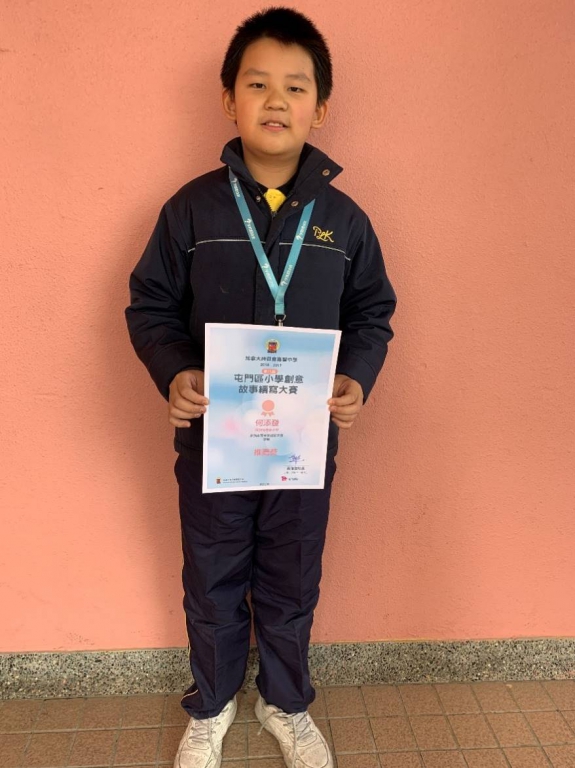 恭喜5D何添發同學獲得由加拿大神召會嘉智中學與屯門婦聯合辨的「第八屆屯門區小學創意故事續寫大賽」的推薦獎﹗