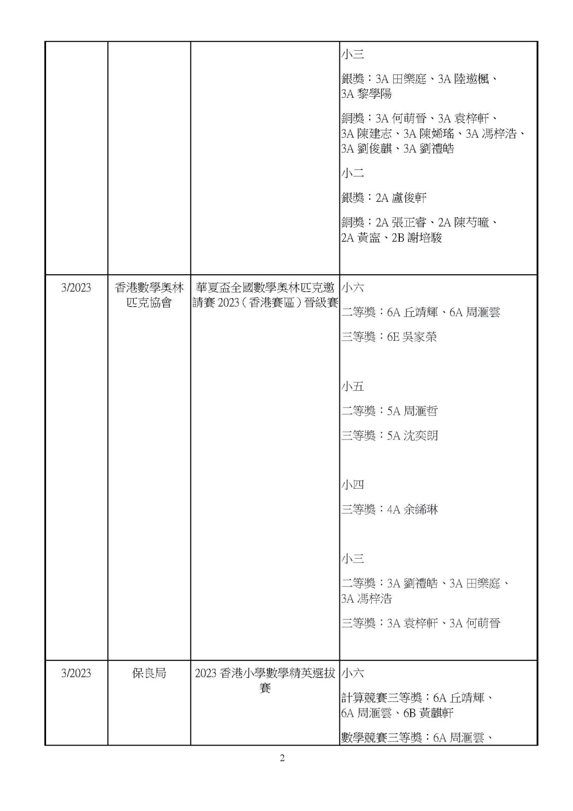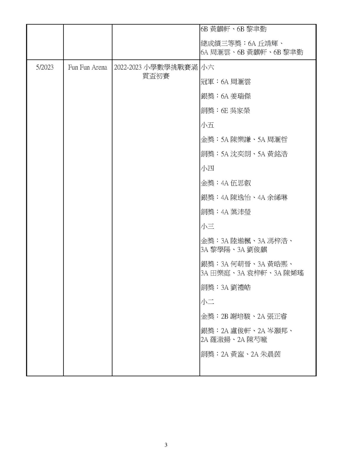 22-23年度: 各項數學比賽得獎名單