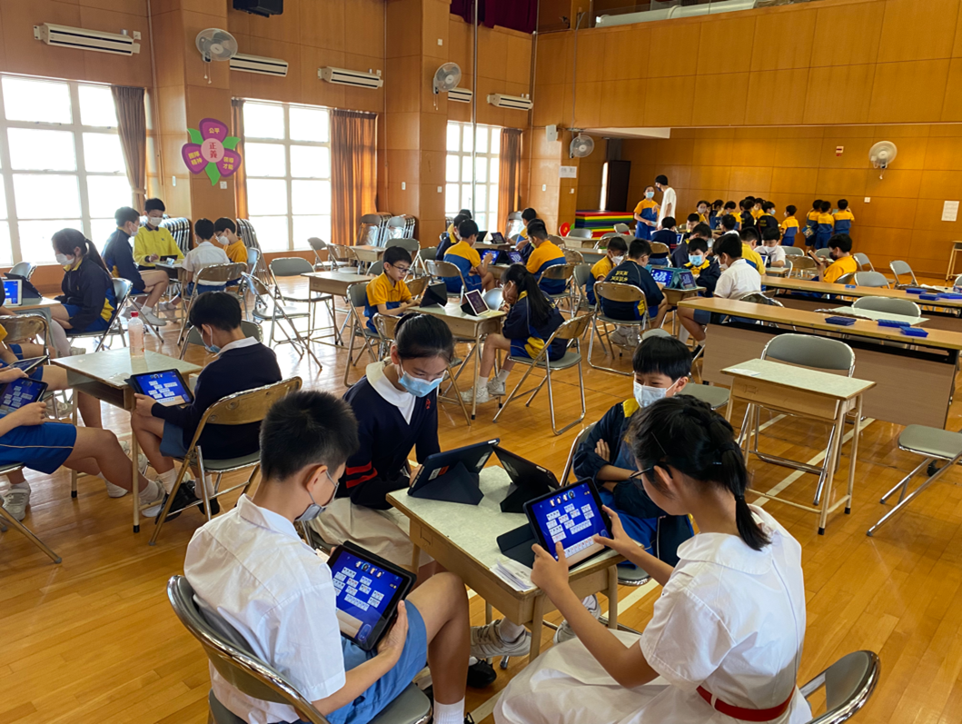 1-3年級學生在禮堂進行蘋果棋比賽