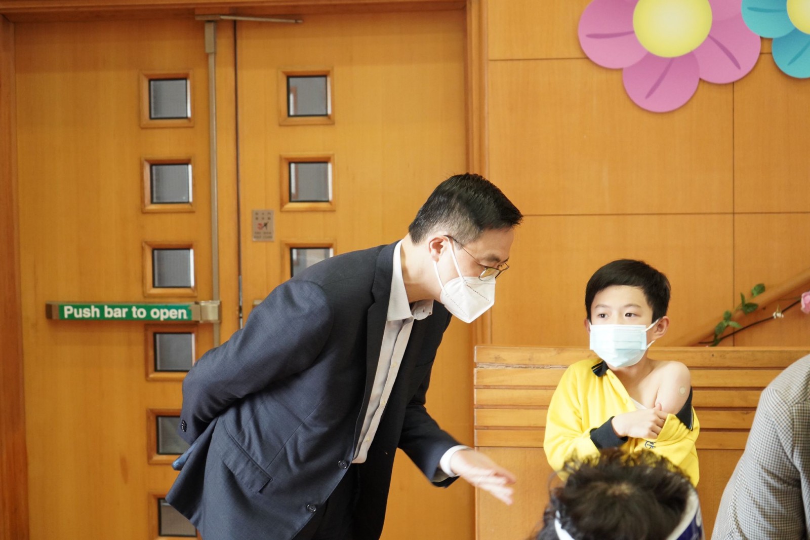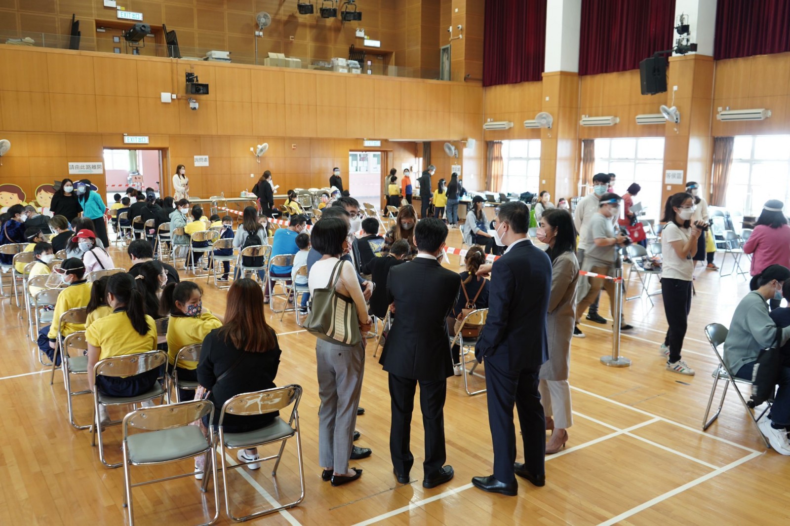 除了在三月一日(二)由校長和老師們帶領60名學生到兒童疫苗中心接種復必泰疫苗之外,亦於三月四日(五)提供到校注射科興疫苗服務,連同區內3間幼稚園,四間學校共約380位學生及家長接種疫苗。