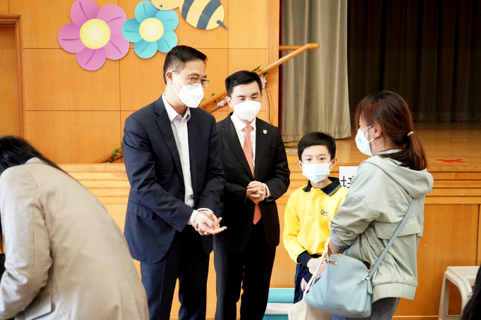 本校衷心感謝教育局局長楊潤雄先生及保良局主席林潞先生於三月四日(五)到訪本校,為到校接種科興疫苗的學生和家長們打氣。