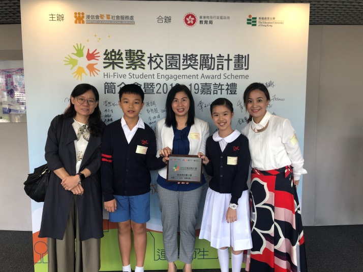 本校榮獲1819年度「樂繫校園」小學傑出大獎,以表揚學校在以下五個範疇,包括「行動連繫」、「知識連繫」、情意連繫」、「人際連繫」及「家、社連繫」均有傑出之表現。本校着重建立連繫的校園氣氛,促使學生和家長與校園建立互信關係,提升學生的投入感,從而增加校園生活的愉快情緒及成長動力。